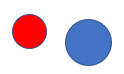赤い球と青い球をクリックすると、 青い球は一定の軌道上を左右運動、 赤い球は矩形軌道上を動きます。