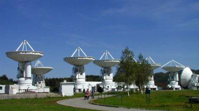 (野辺山宇宙電波観測所) 野辺山宇宙電波観測所には、直径45メートルの電波望遠鏡があります。波長が1から10ミリメートルのミリ波と呼ばれる電波を観測するための望遠鏡としては、世界最大級の電波望遠鏡です。 |