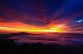(日本の夜明け) 太陽が地平線より上に昇る前から大気中の塵による光の散乱により空が明るくなり始める。星が見え暗さが残る段階までを「明け方」、日の出前でも十分に空が明るい段階を「夜明け」として区別するとか・・・。 |